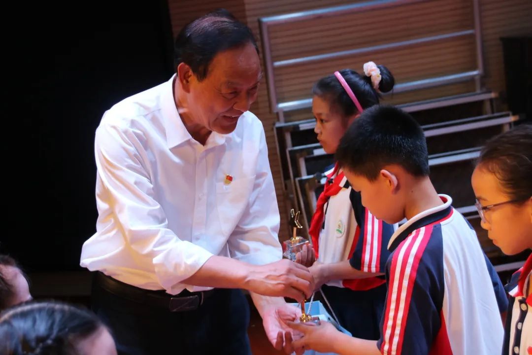 捐贈儀式上,華友控股集團副總裁黃孔森告訴小朋友們要從小樹立遠大理想,從小養成優良品德,好好學習、天天向上、回報家鄉,共同建設鋰電小鎮。