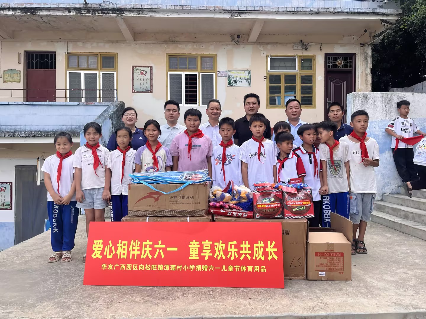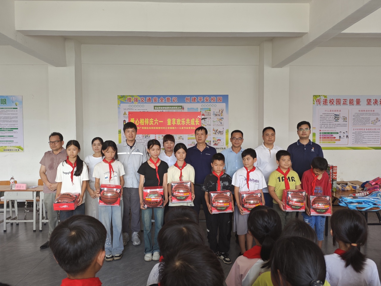 為深入踐行華友“不管在哪里投資,都要為當地社會做貢獻”的投資理念,持續助力鄉村教育發展,5月28日,在“六一”兒童節來臨之際,華友廣西區域管理中心及華友廣西園區各產業集團主要領導分別率隊,再次走進松旺鎮潭蓮村、雙旺鎮白平村、邦杰村、曾村及雙旺鎮中心小學等5所村級小學開展“愛心相伴慶六一  童享歡樂共成長”主題愛心捐贈活動,為3700余名學生送去籃球、羽毛球、跳繩等體育用品。這是華友廣西園區連續第三年向周邊鄉鎮學校進行定向公益支持,用實際行動傳遞企業溫暖。