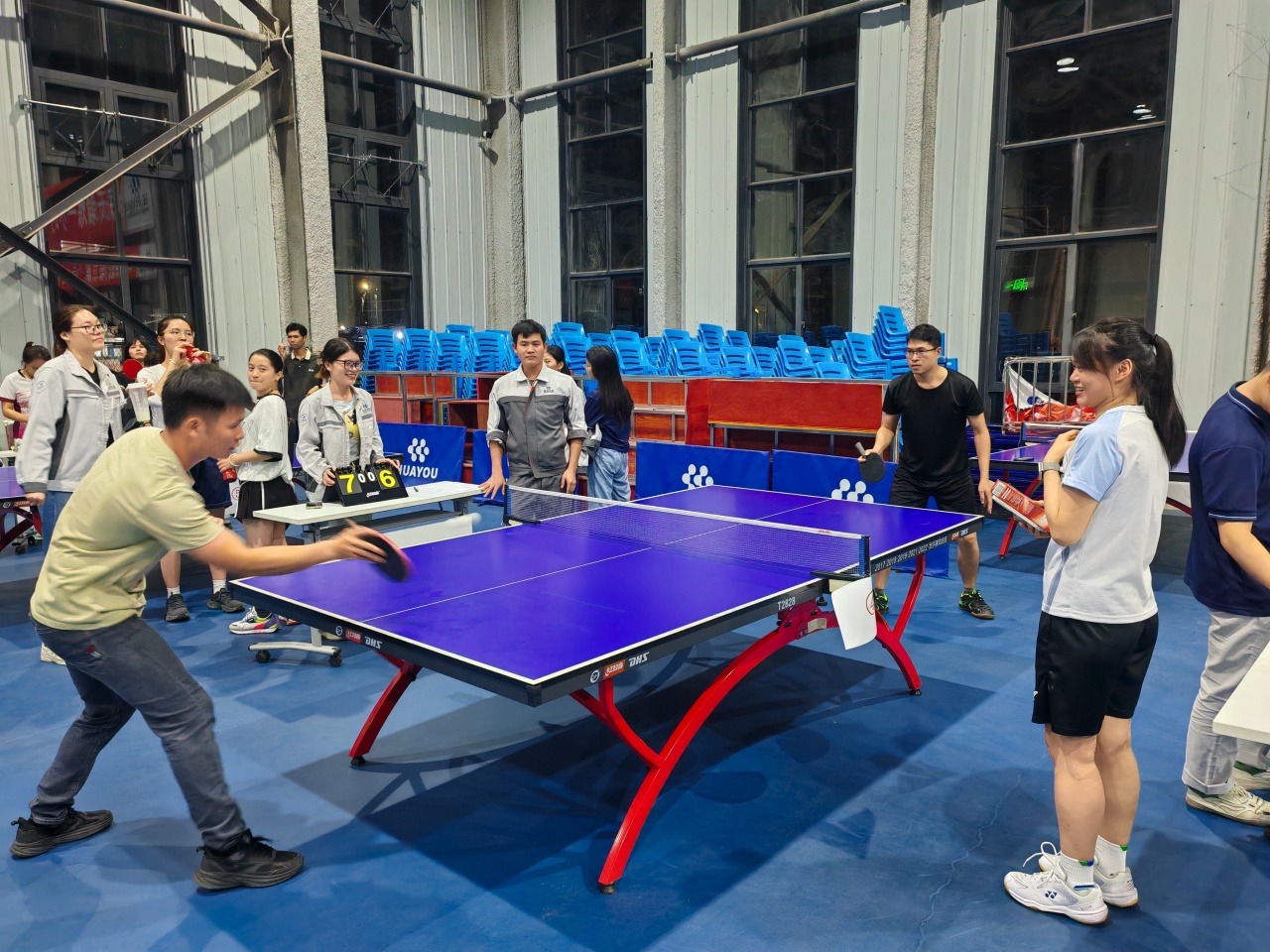 賽場上,選手們精神抖擻、斗志昂揚,直板與橫拍交替切換,削球、扣殺、搓球、拉弧圈等技藝行云流水。時而精準防守、穩扎穩打,時而主動出擊、強勢進攻,每一個嫻熟的動作都展現出扎實的功底,每一次精彩的對攻都引來現場陣陣喝彩。大家秉持“友誼第一、比賽第二”的體育精神,在攻防轉換間較量技巧,在比分膠著中比拼毅力,將積極進取、頑強拼搏的奮斗精神展現得淋漓盡致,充分彰顯了華友員工迎難而上、永不言棄的精神風貌。