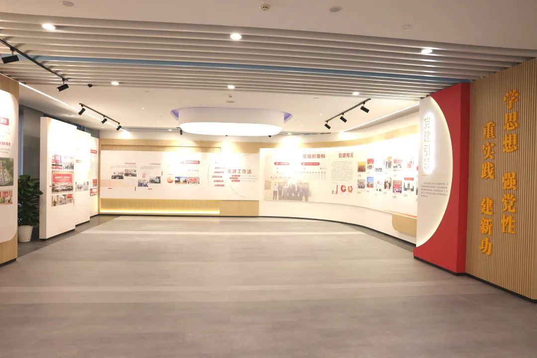 The Party Service Centre of Huayou Quzhou Industrial Park has a functional layout of "1+N", with the Party Exhibition Hall as the main line, equipped with the exhibition hall of entrepreneurial development history, the staff bookstore, the red education centre, the news broadcasting room, and the "two representatives and one committee member" studio, which is a combination of education and propaganda, reception, meeting and training, culture and health care.