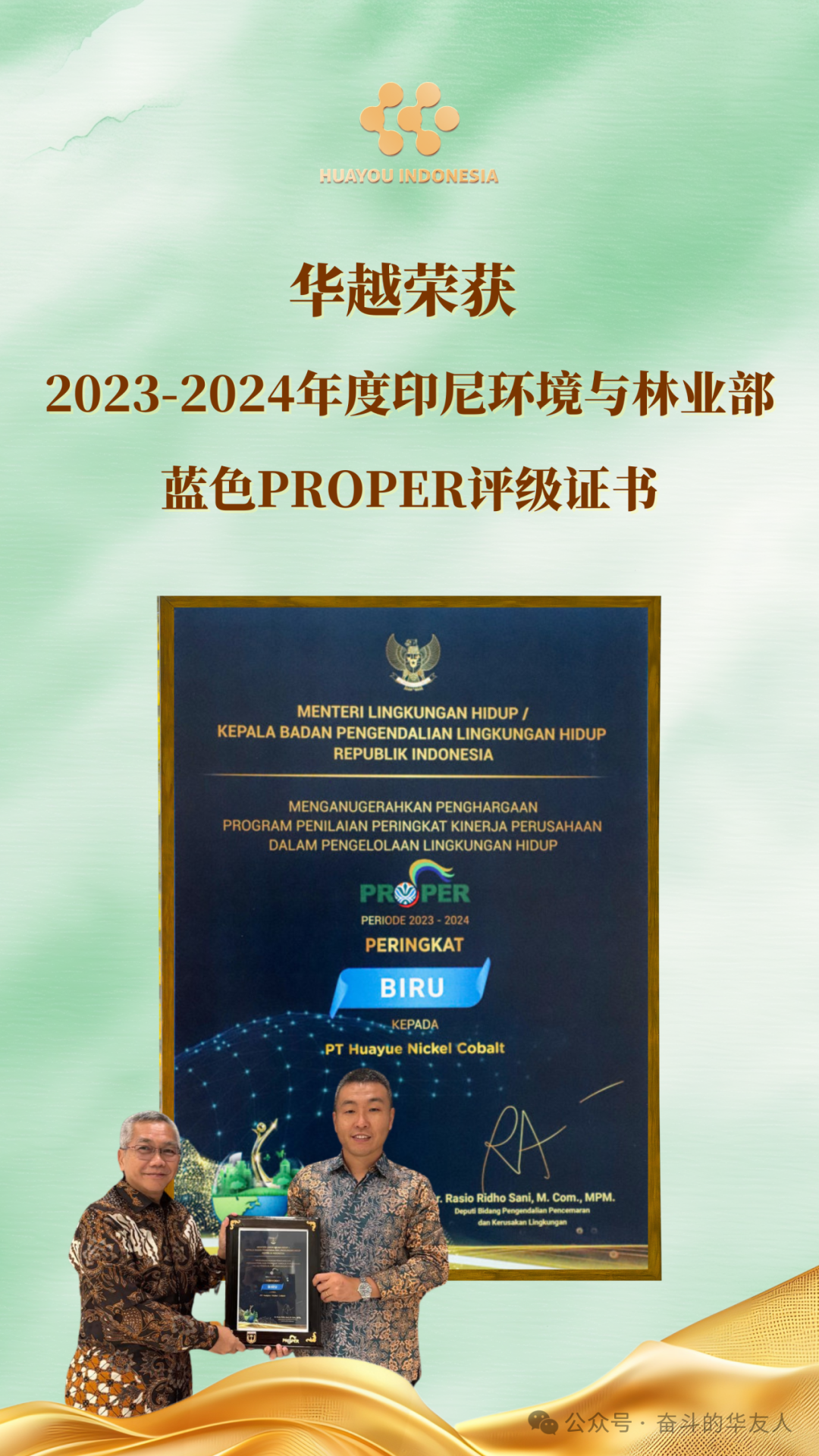 Commitment to Sustainable Development: Huayue Nickel Cobalt (Indonesia) Receives Blue PROPER Rating Certificate