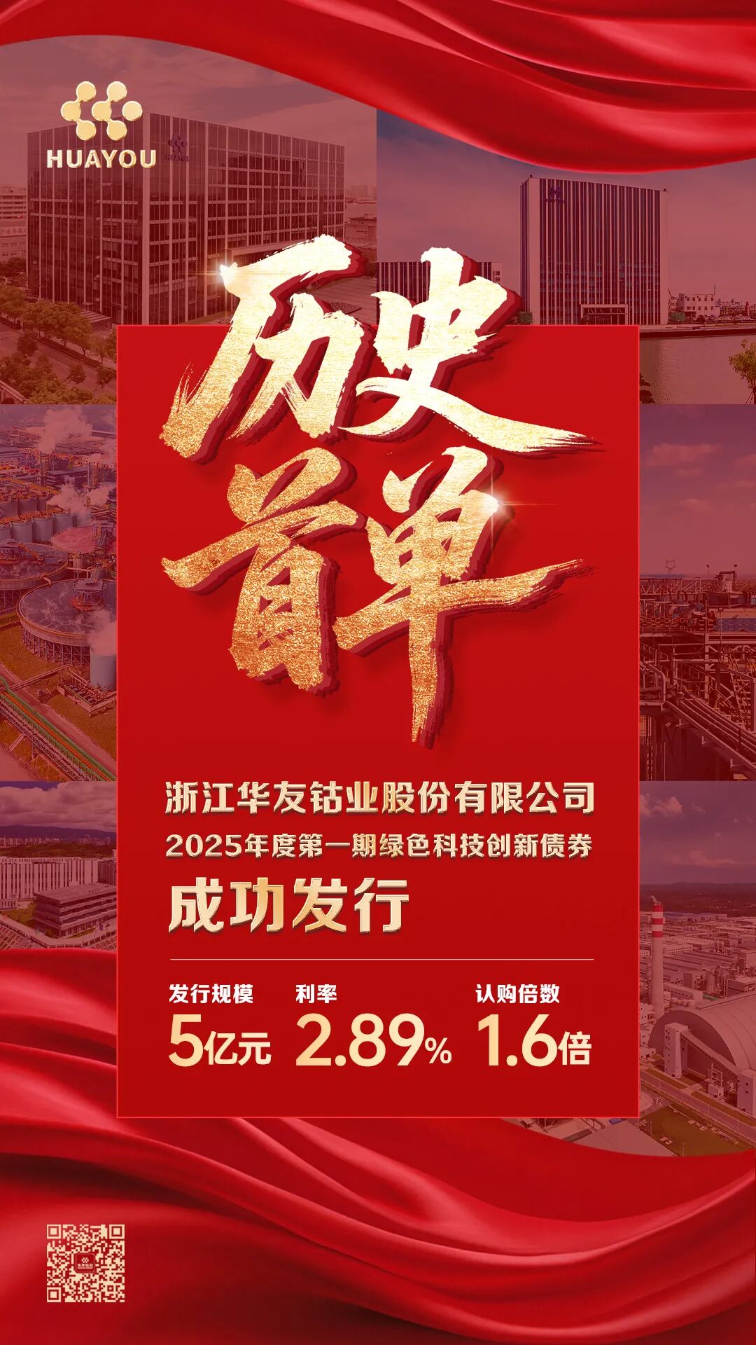 Recently, Huayou Cobalt seized market opportunities and successfully completed the issuance of its first ever medium and long-term green technology innovation bonds. The issuance scale totals RMB 500 million with a 2-year tenor and a coupon rate as low as 2.89%, achieving a subscription multiple of 1.6x. This breakthrough not only marks the company's successful opening of channels for medium and long-term bond issuance but also fully demonstrates the bond market's strong confidence in the company's fundamentals and development prospects through the high subscription multiple and highly competitive interest rate.