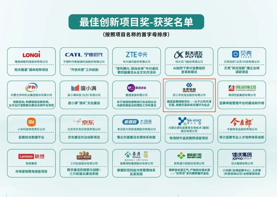 此次獲獎是對參與到監察網格深化項目建設的全體華友人的肯定與激勵。未來,公司將持續推進廉潔合規工作,積極探索清廉民企建設的創新之道,秉承廉潔創造價值,堅持合規守護發展,為公司爭先創優、提質進位,建成數一數二的行業標桿注入不竭動力。