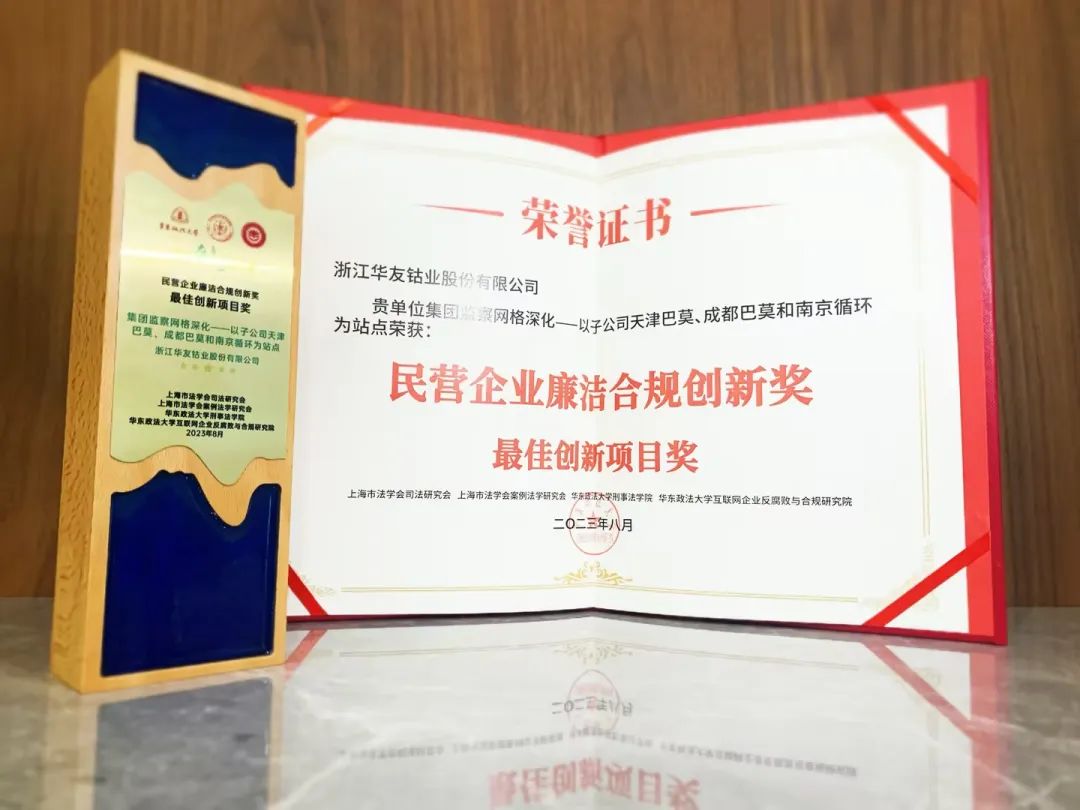 2023年8月3日,第二屆“民營企業廉潔合規創新獎”在華東政法大學長寧校區舉行頒獎盛典,華友鈷業監察網格深化項目榮獲“最佳創新項目獎”獎項。