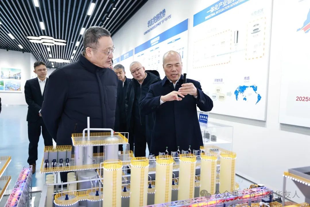 座談交流前,葛紅林還參觀了華友展廳,詳細了解了公司企業文化,全球化發展歷程、產業布局、項目建設、發展規劃及近年來的經營情況。