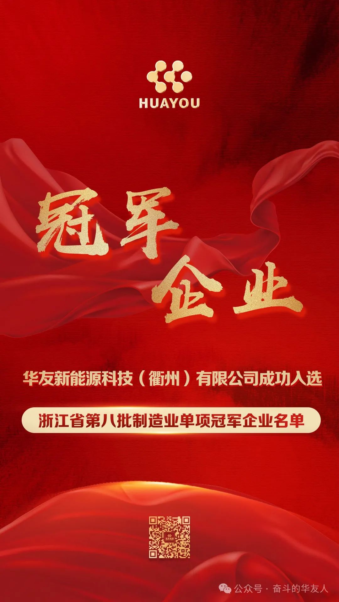 近日,華友新能源科技(衢州)有限公司(以下簡稱“華友新能源衢州”)成功入選——第八批制造業單項冠軍企業名單,展現出了公司在新能源鋰電材料領域卓越的技術創新能力和市場領導力。