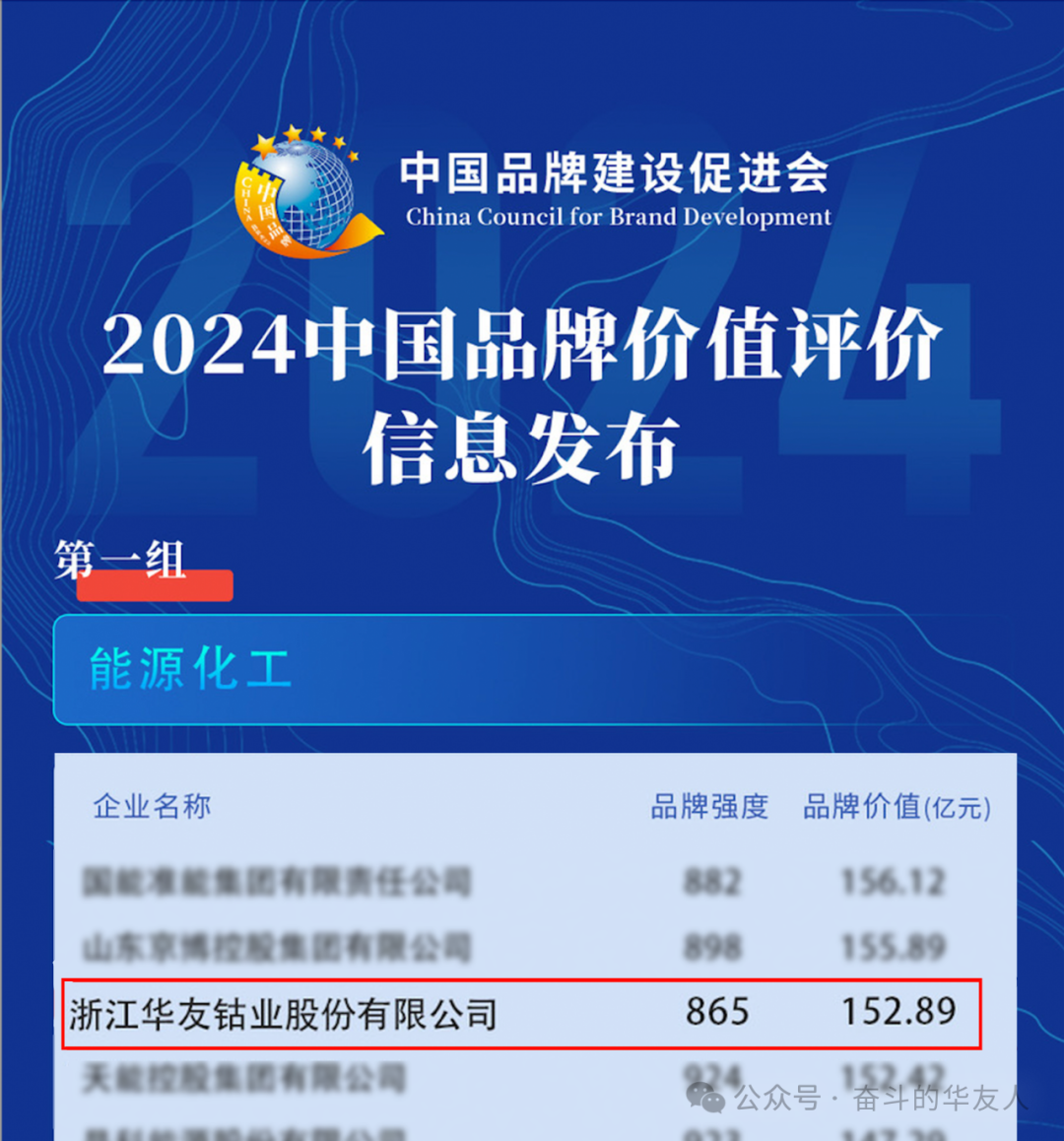 5月11日,新華社、中國品牌建設促進會、中國資產評估協會等單位在浙江德清聯合發布“2024中國品牌價值評價信息”。華友鈷業品牌價值達152.89億元,品牌強度865,在1000多個品牌中脫穎而出。