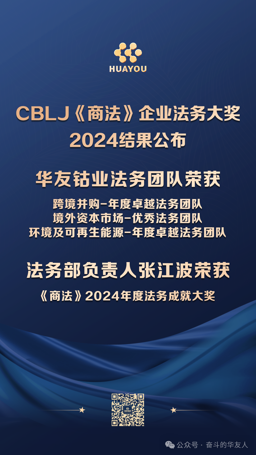 法務部部長張江波榮獲《商法》2024年度法務成就大獎,并憑借其在多個領域的優異表現,同時獲得境外資本市場-年度卓越法務、境內合規-優秀法務獎、跨境并購-年度卓越法務、環境及可再生能源-優秀法務獎等共計五個獎項。