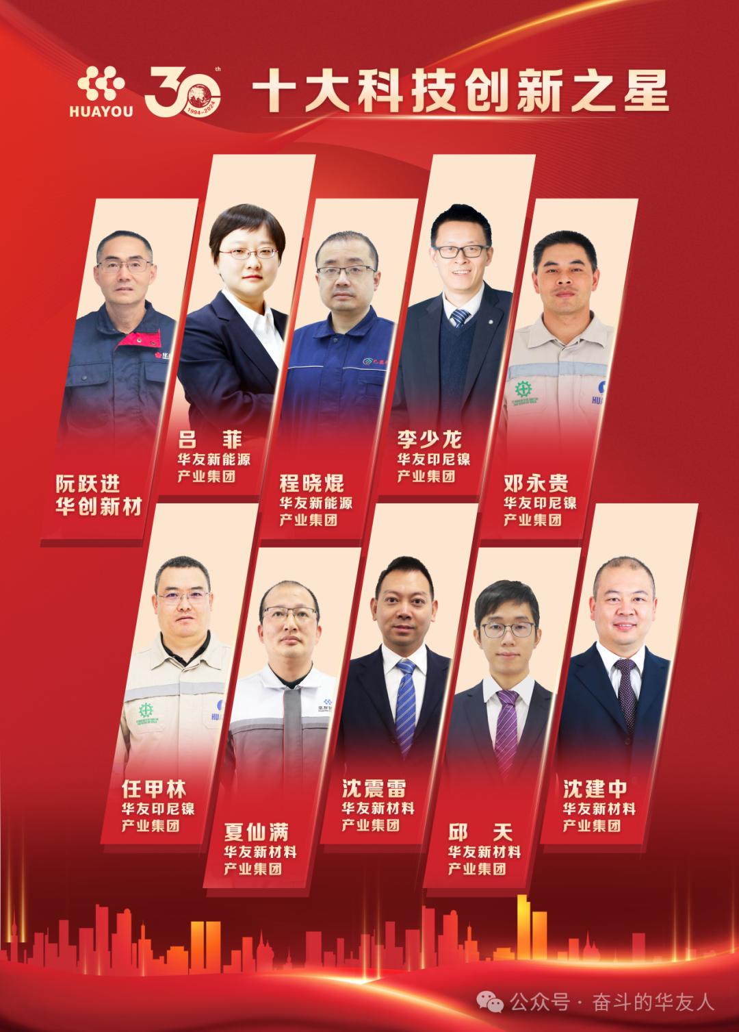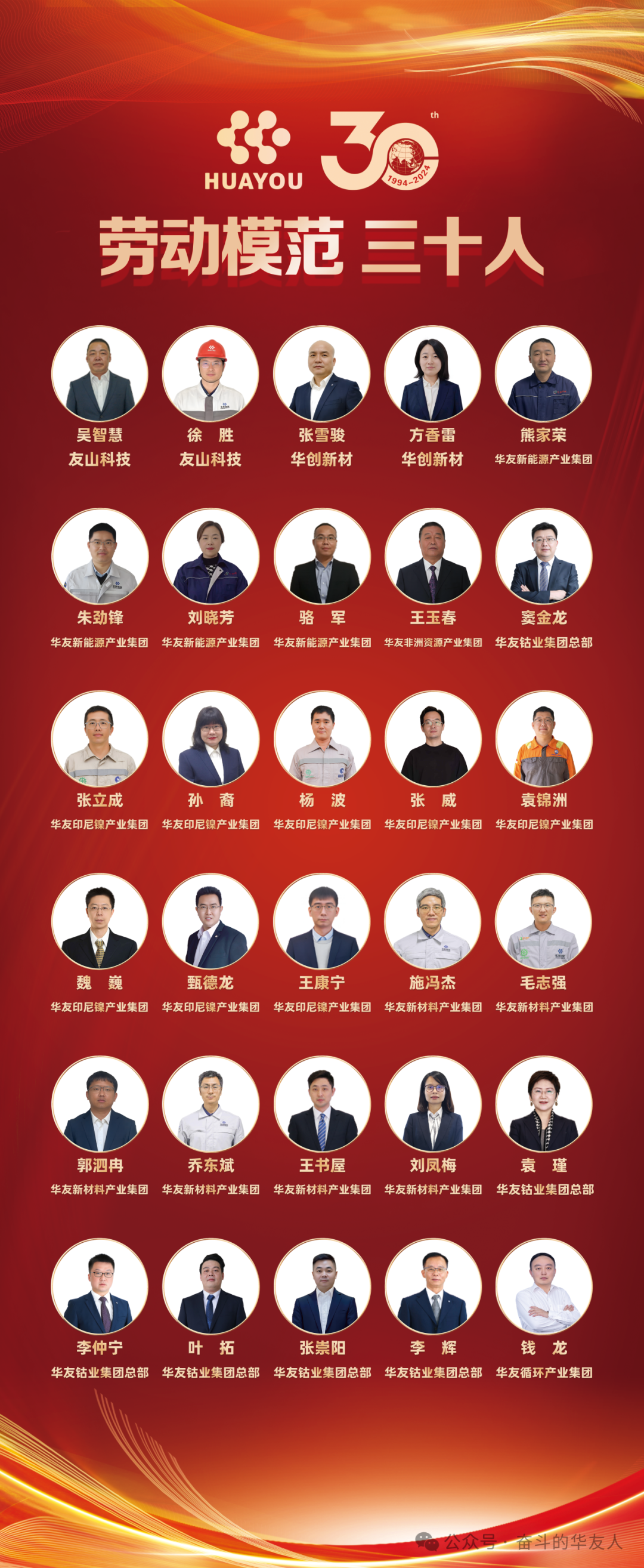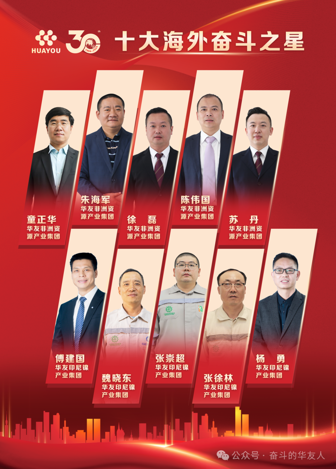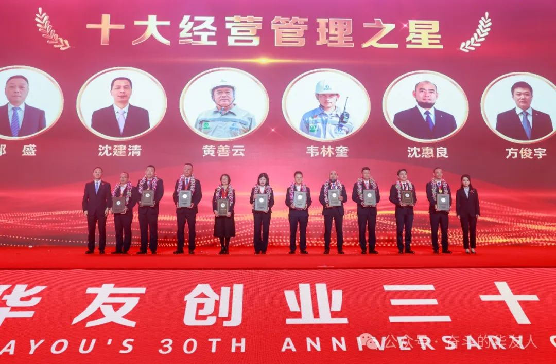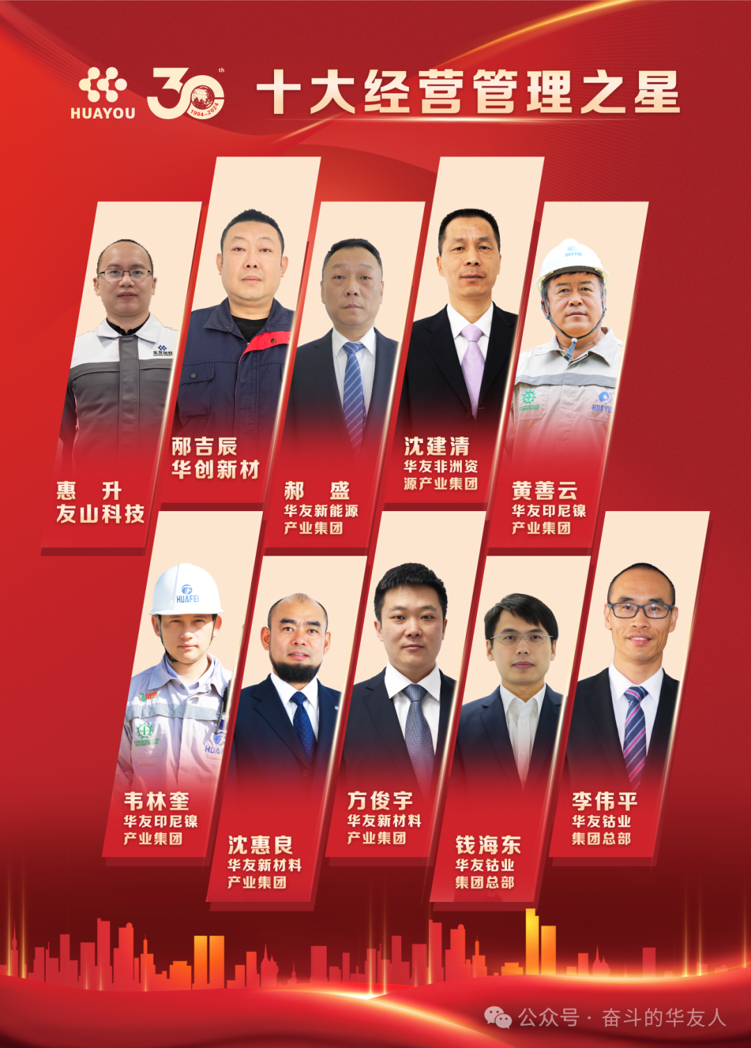 砥礪前行鑄輝煌,風雨兼程譜新章。華友自默默蓄力到揚帆起航,三十載崢嶸歲月,涌現出一批又一批奮斗的華友人。12月7日,在華友創業三十周年慶典上,對三十周年勞動模范、十大經營管理之星、十大科技創新之星、十大海外奮斗之星獲得者進行隆重表彰。