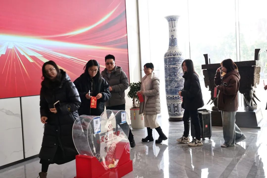 2025蛇年新氣象,公司總部愛(ài)心募捐活動(dòng)在華友研發(fā)大樓一樓大廳舉行,早上八點(diǎn)剛過(guò),來(lái)自各部門(mén)的干部員工在大廳就已排起隊(duì)伍。