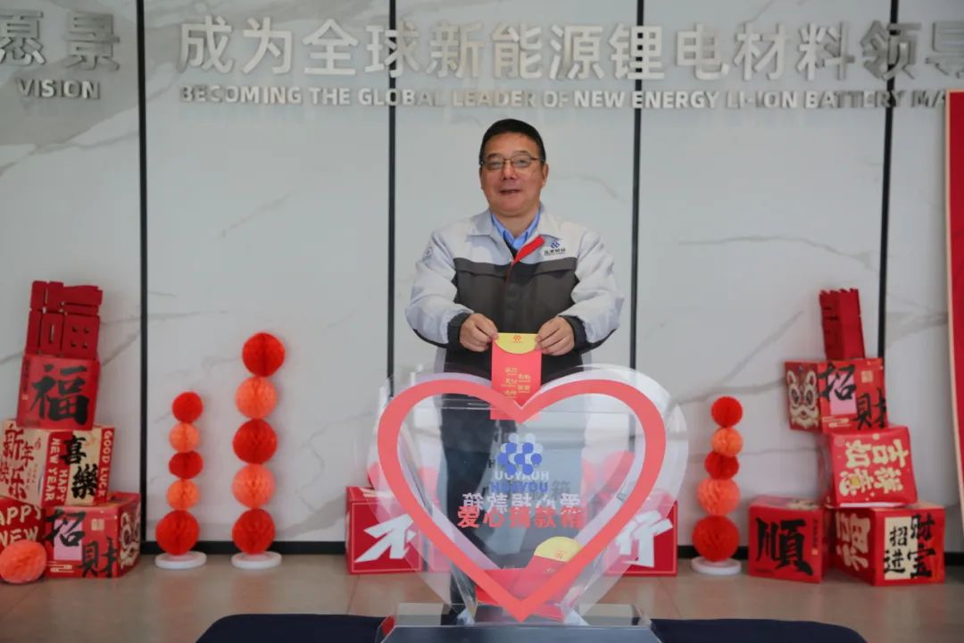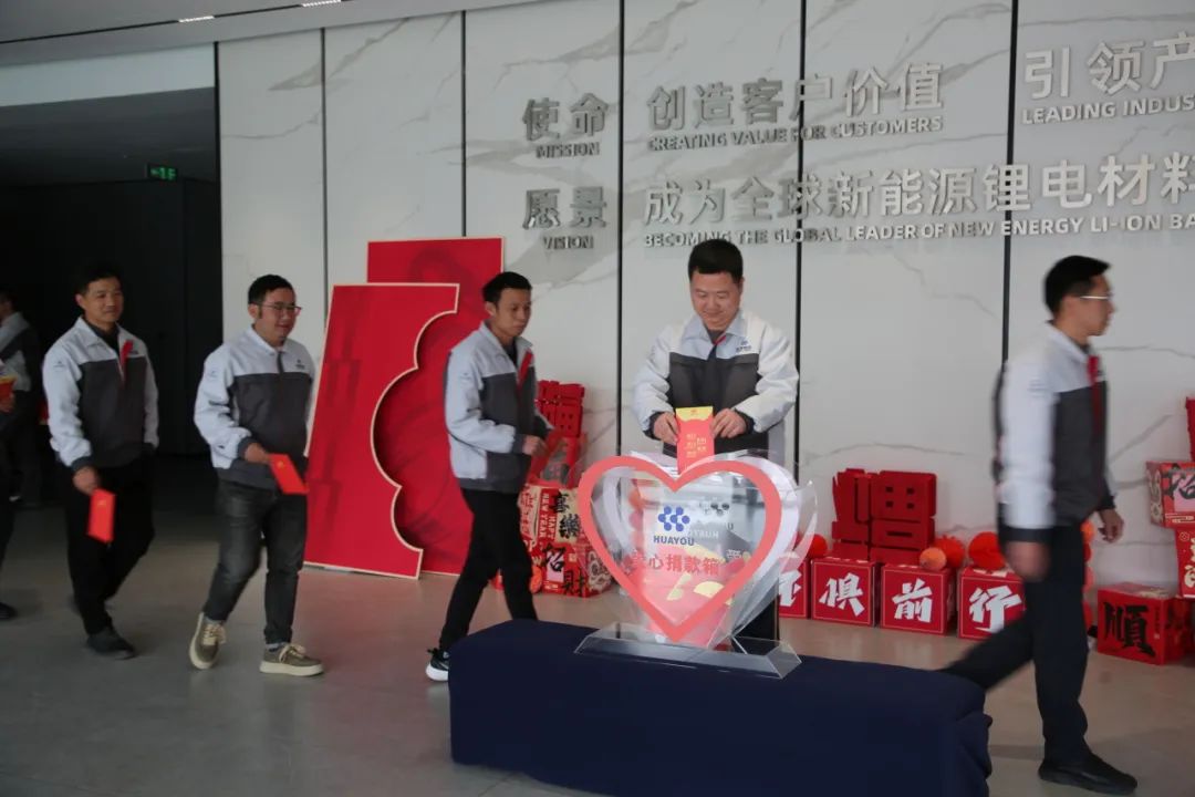 以愛(ài)之名,聚光而行。蛇年正月初八,新年開(kāi)工第一天,新能源產(chǎn)業(yè)集團(tuán)桐鄉(xiāng)區(qū)域舉辦“華友新能源產(chǎn)業(yè)集團(tuán)愛(ài)心基金”募捐活動(dòng)。在公司高級(jí)副總裁、新能源產(chǎn)業(yè)集團(tuán)總裁陳要忠的帶領(lǐng)下,廣大干部員工積極相應(yīng)愛(ài)心募捐活動(dòng)。活動(dòng)現(xiàn)場(chǎng),一個(gè)個(gè)紅包伴隨一份份愛(ài)心投入募捐箱。