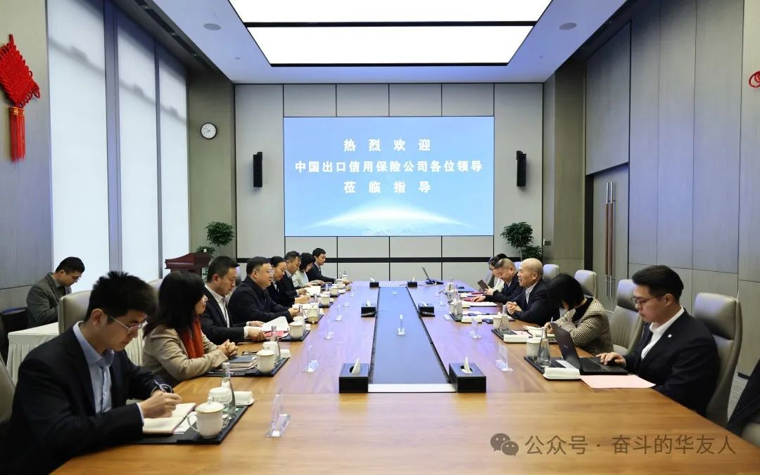 2月14日,中國出口信用保險公司黨委委員、副總經理徐新偉一行蒞臨華友總部參觀交流,公司董事長陳雪華熱情接待。