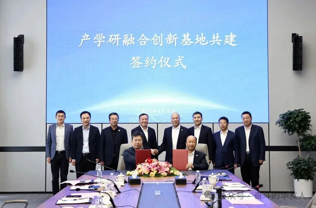 ▲東北大學黨委副書記張皓、華友鈷業科技副總裁張冰簽訂產學研融合創新基地共建意向書。