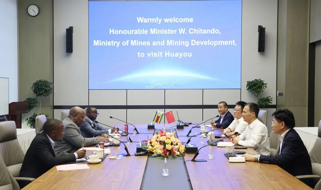 8月18日,津巴布韋礦業(yè)部部長威斯頓·奇坦多(Hon. Winston Chitando)一行蒞臨華友鈷業(yè)總部考察交流。公司董事長陳雪華熱情接待。