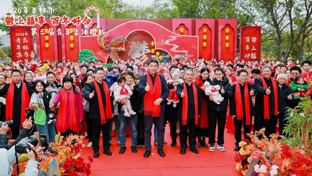 近日,2026年玉林市“鬱上囍事 百年好合”第三屆青年集體婚禮舉行,共同見(jiàn)證100對(duì)新人喜結(jié)連理。玉林市委書(shū)記王琛出席并為新人證婚。