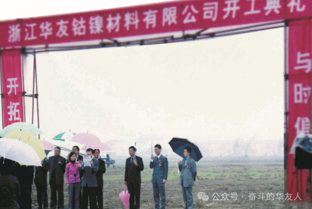 2002年,冬月的清晨,華友人擎舉著“開拓進取 與時俱進”的旗幟,腳踏泥濘,從鄉村走進城市,開啟新征程。